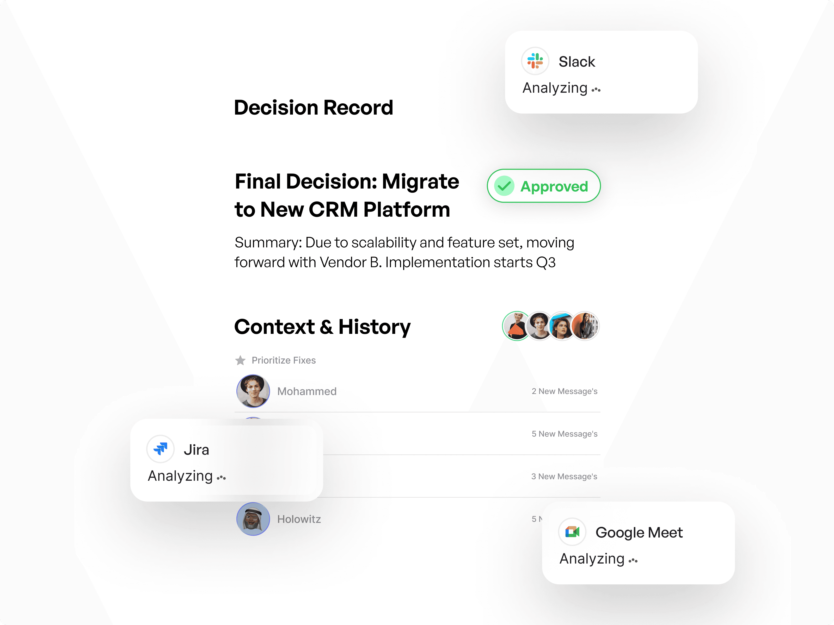 A page that lists a decision rarely includes the alternatives or tradeoffs considered. That missing context causes repeated work and wrong assumptions. Coworker preserves decision history so teams understand the reasoning behind past choices.