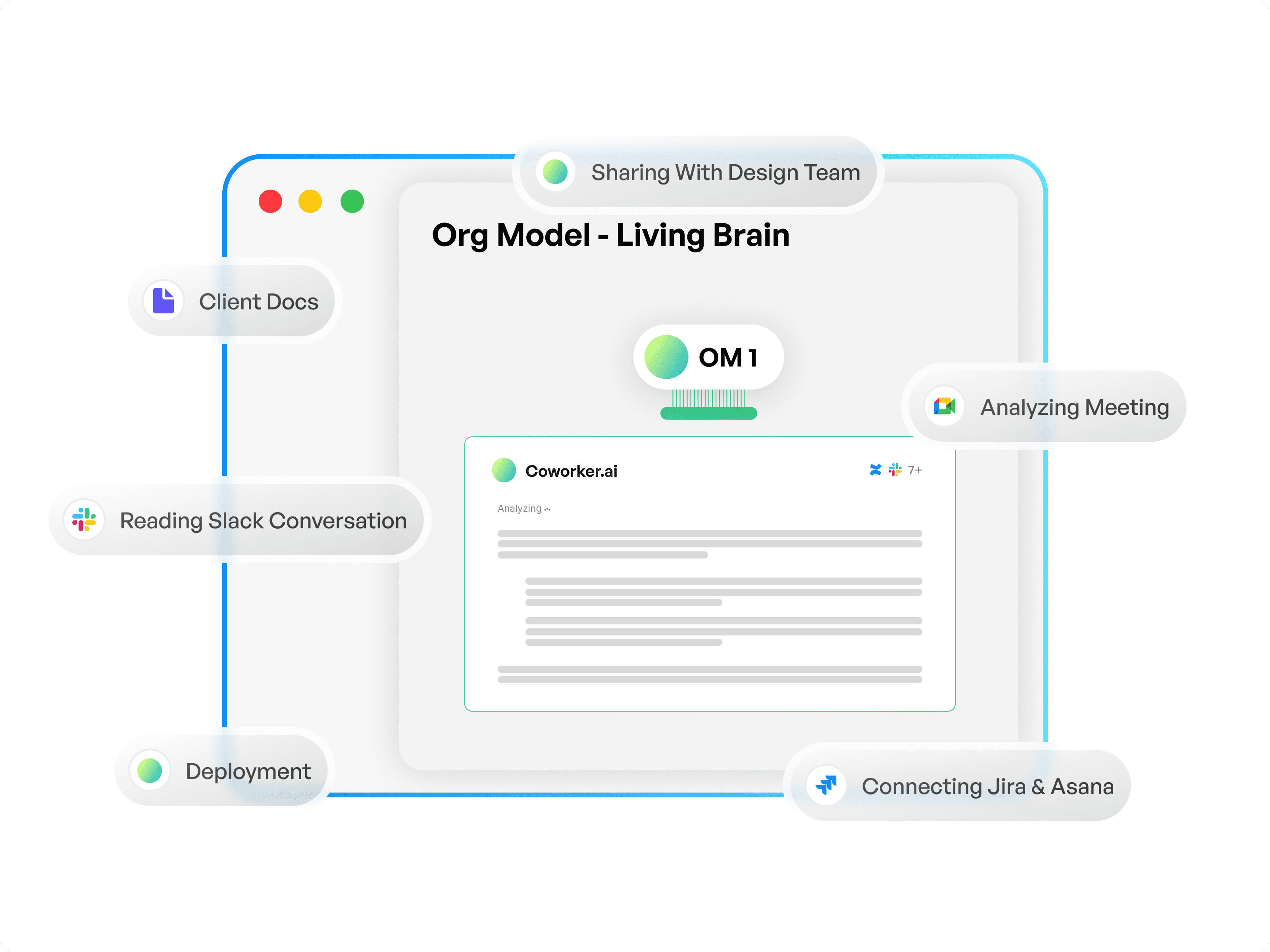 Coworker integrates with Slack, Jira, GitHub, Confluence and dozens more so no single system needs replacing. Integration captures both structured and unstructured data and creates a unified index your teams can query instantly.