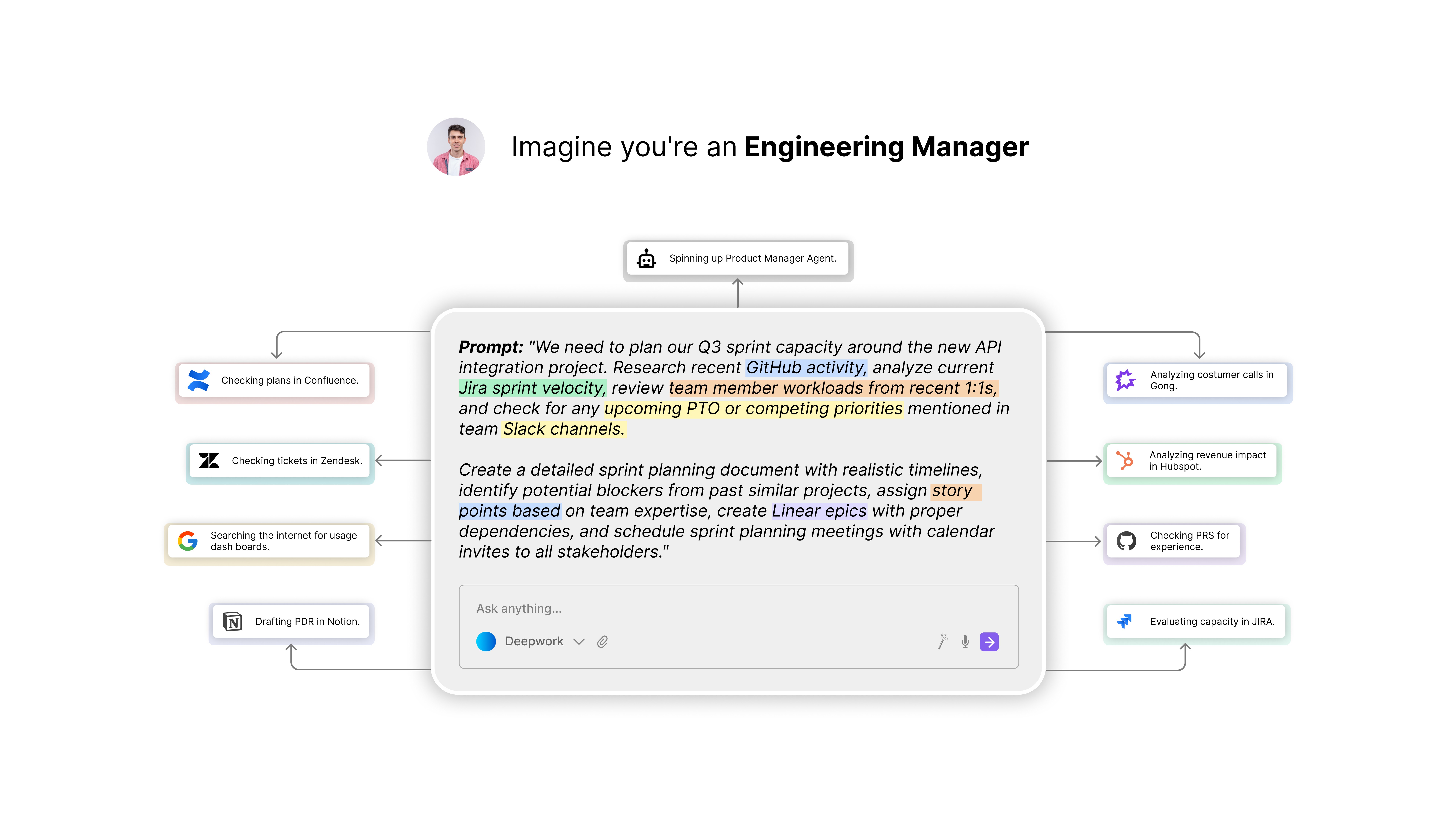 Deep Work can find Google docs, create Notion pages, update Asana projects, create JIRA tickets, and 500+ tasks across your apps