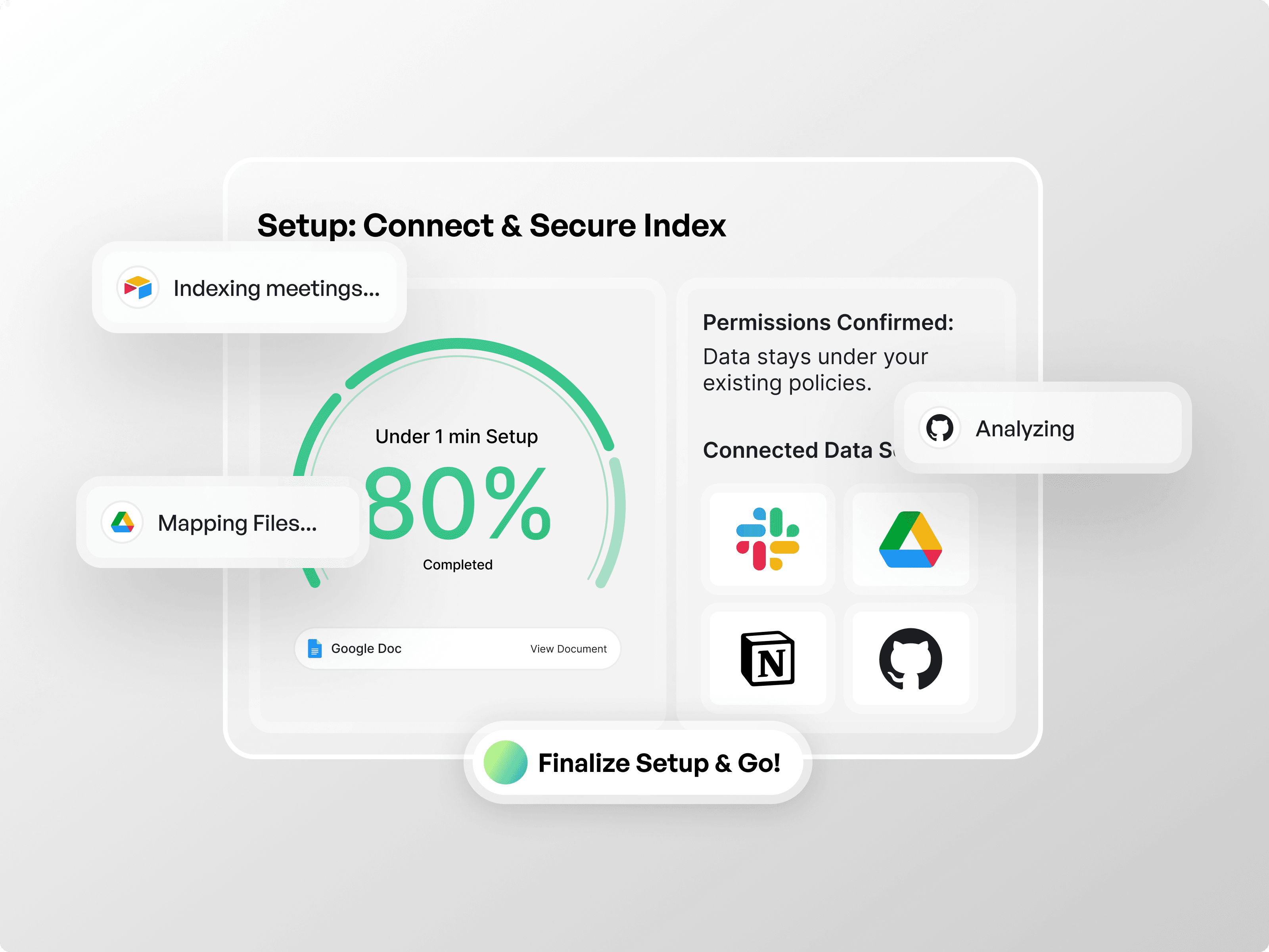 Coworker connects to your existing apps and data sources without changing permissions. Setup takes less than a day for most teams and indexes historical content across Slack, Jira, email and document stores so search returns complete context.